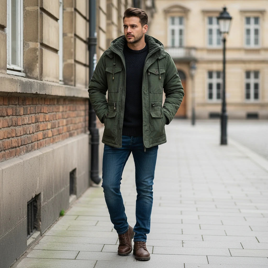 Dieser robuste Winterparka begleitet Sie zuverlässig durch Alltag, Arbeit und Wochenenden mit klarer, maskuliner Ausstrahlung. Er bietet Schutz und Struktur, ohne dabei schwer zu wirken, und lässt sich mühelos zu urbanen Looks kombinieren. Die ausgewogene Silhouette sorgt für Präsenz, während Sie sich geschützt, selbstbewusst, komfortabel, modern, entspannt, stabil und sicher fühlen. Ein vielseitiges Essential für Männer, die Funktion und Stil verbinden wollen.
