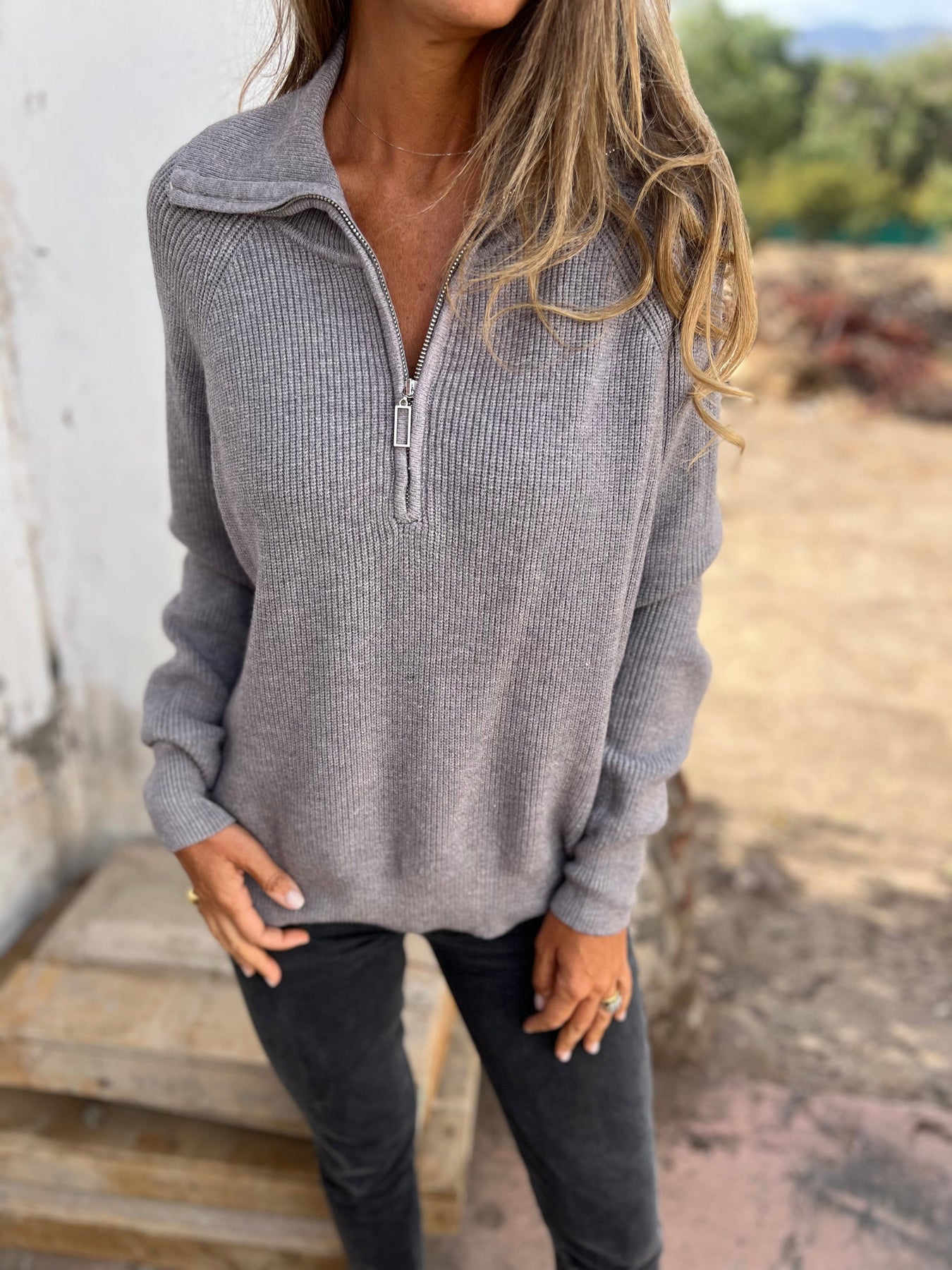 Besonderheiten: Dezente Struktur mit halbem Reißverschluss