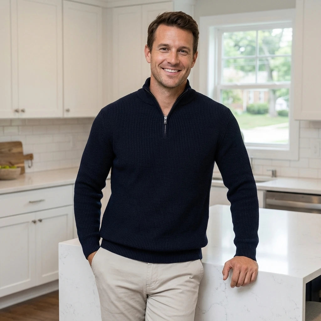 Timon | Herrenpullover im strukturierten Halbzip-Stil